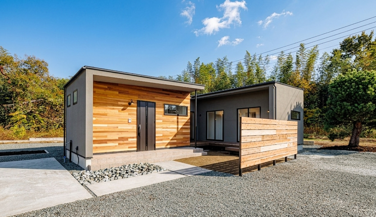 石目と木目のモダン邸宅