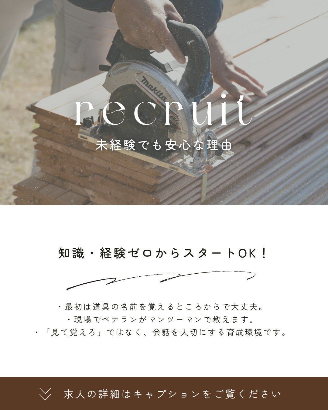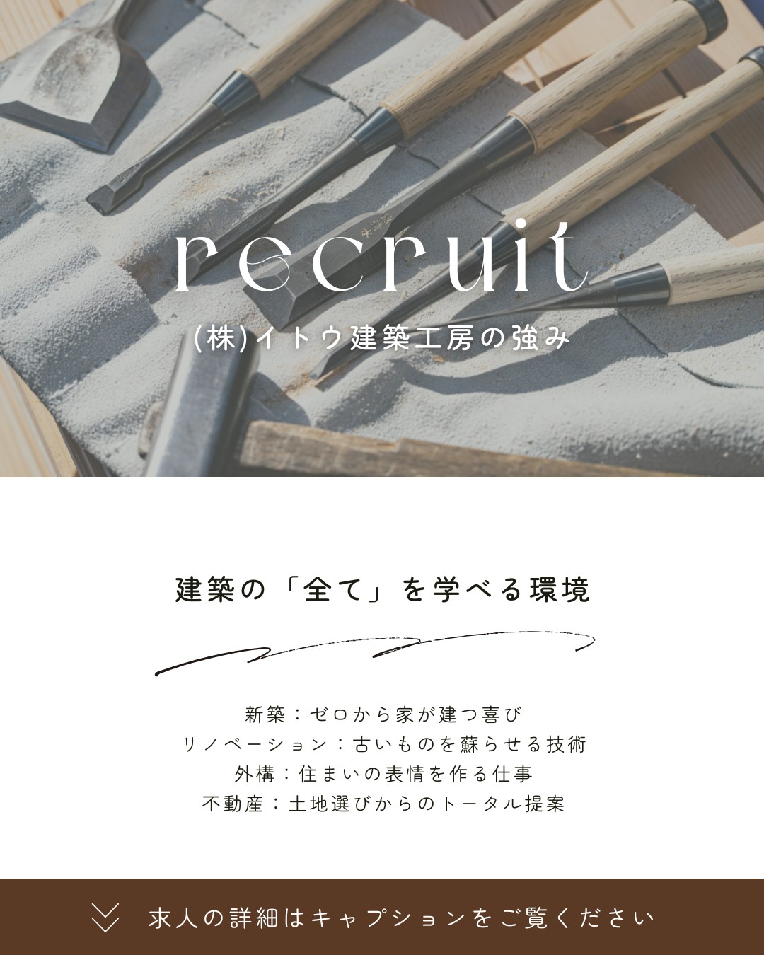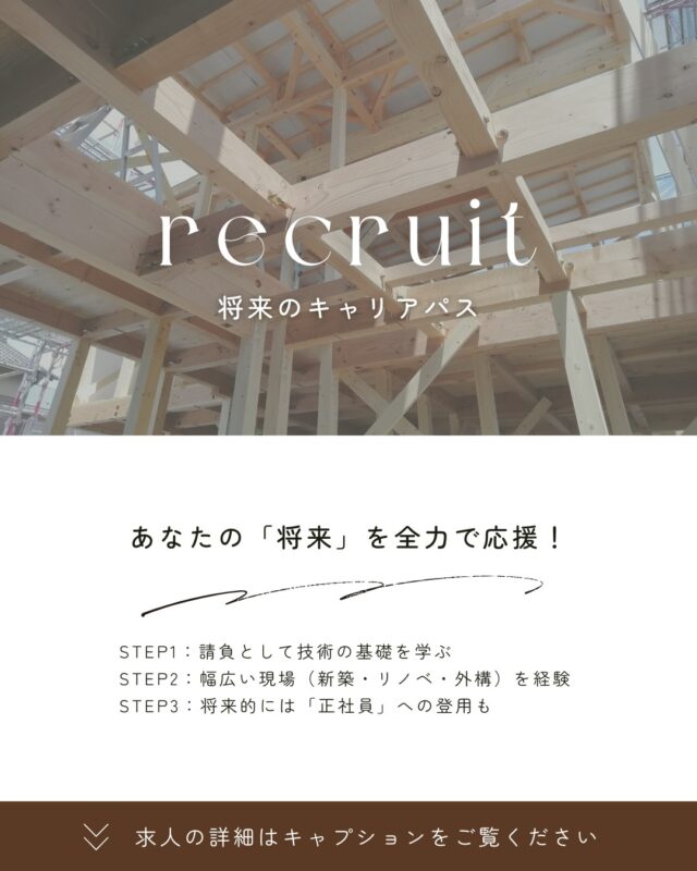 募集職種 : 大工職人(見習い・未経験歓迎)