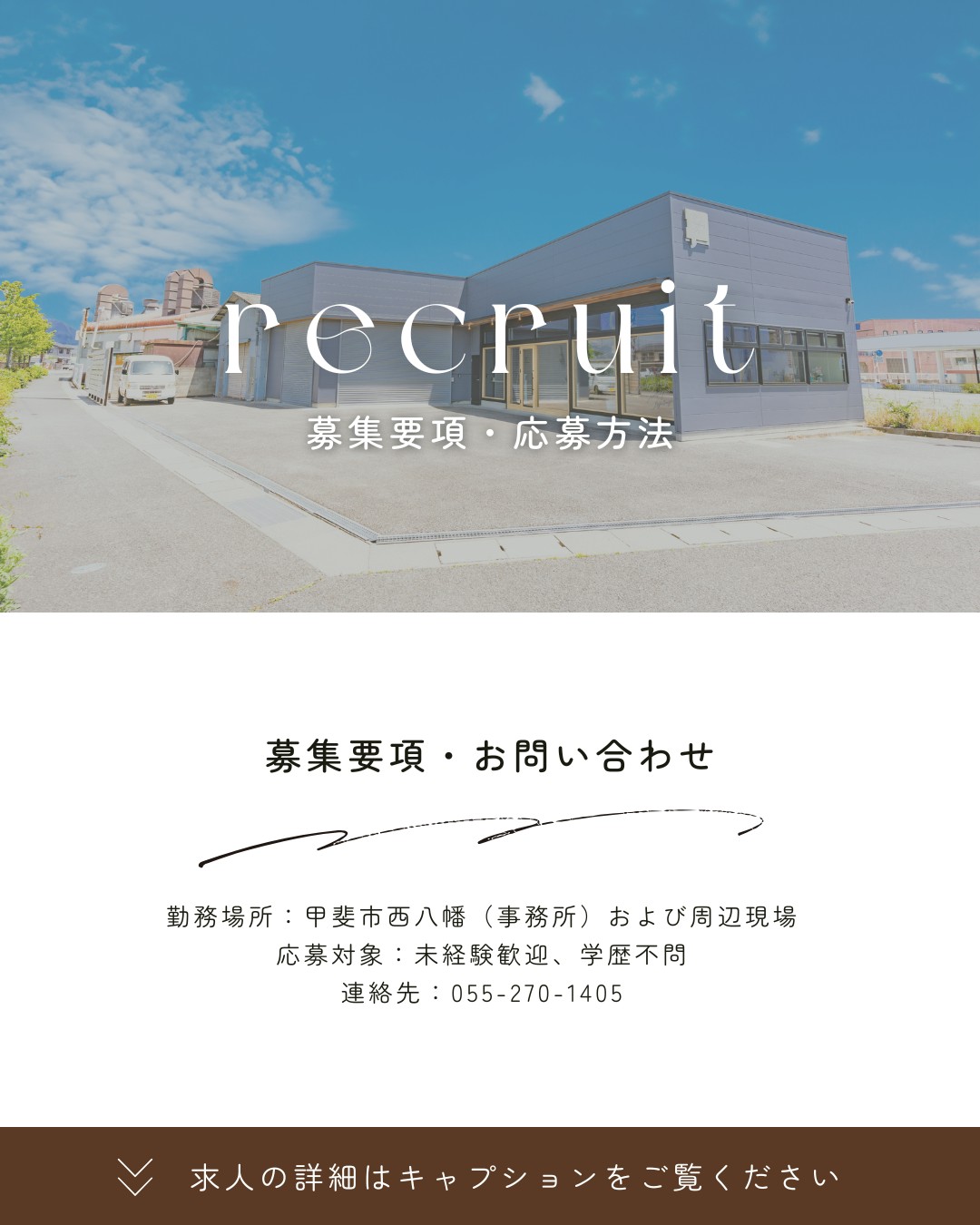 勤務地 : 山梨県甲斐市西八幡(弊社事務所)および各現場