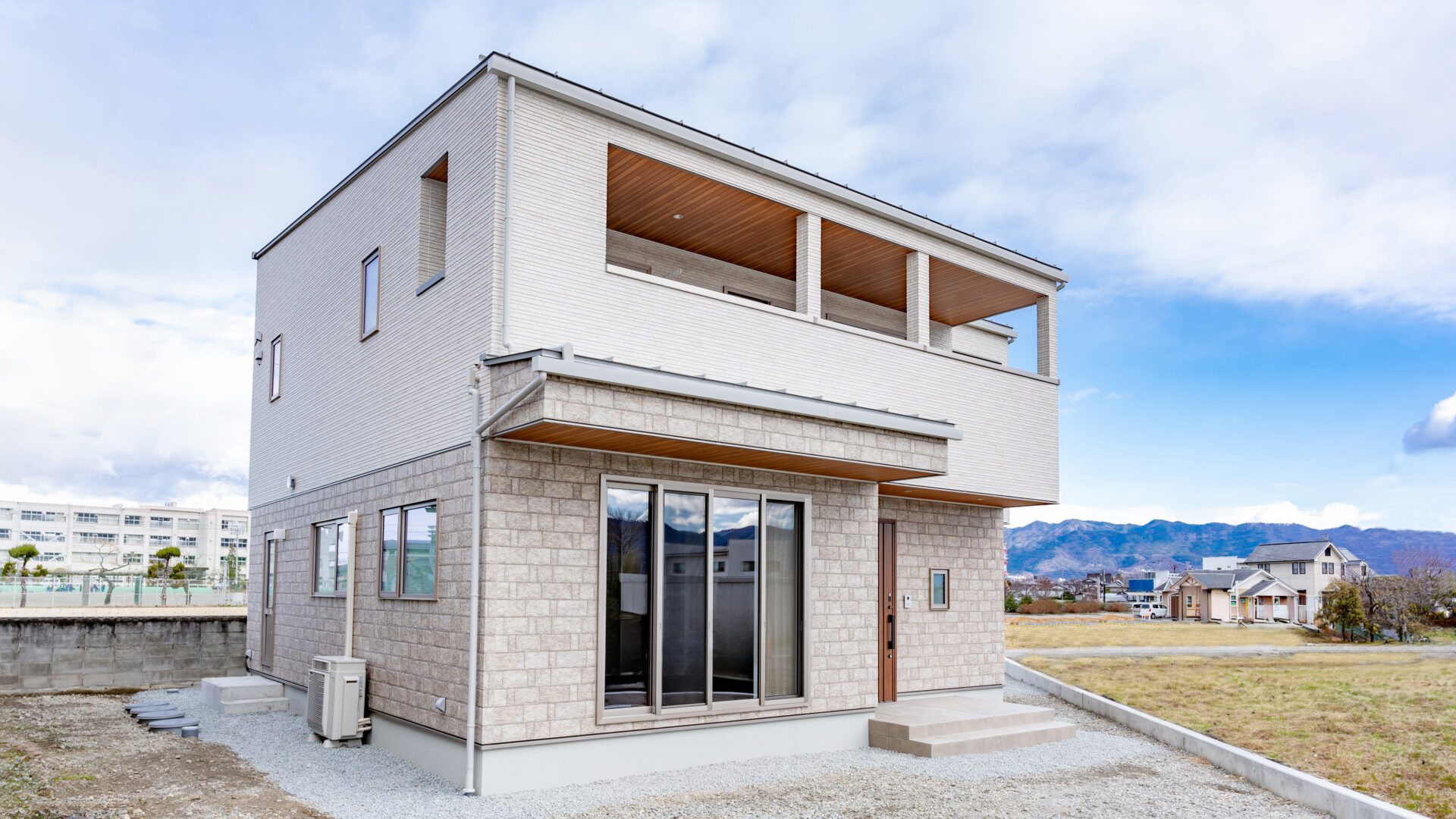 石目と木目のモダン邸宅